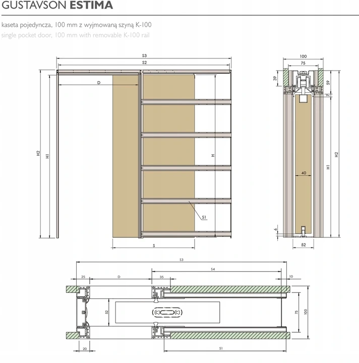 Jest to kaseta z wyjmowanym górnym torem co zdecydowanie ułatwia i przyspiesza montaż/ demontaż oraz okresowe zabiegi czyszczenia. Dzięki opatentowanemu systemowi regulacji, można dokonywać zmian głębokości chowania się drzwi do kasety, nawet na już zamontowanym skrzydle drzwi.